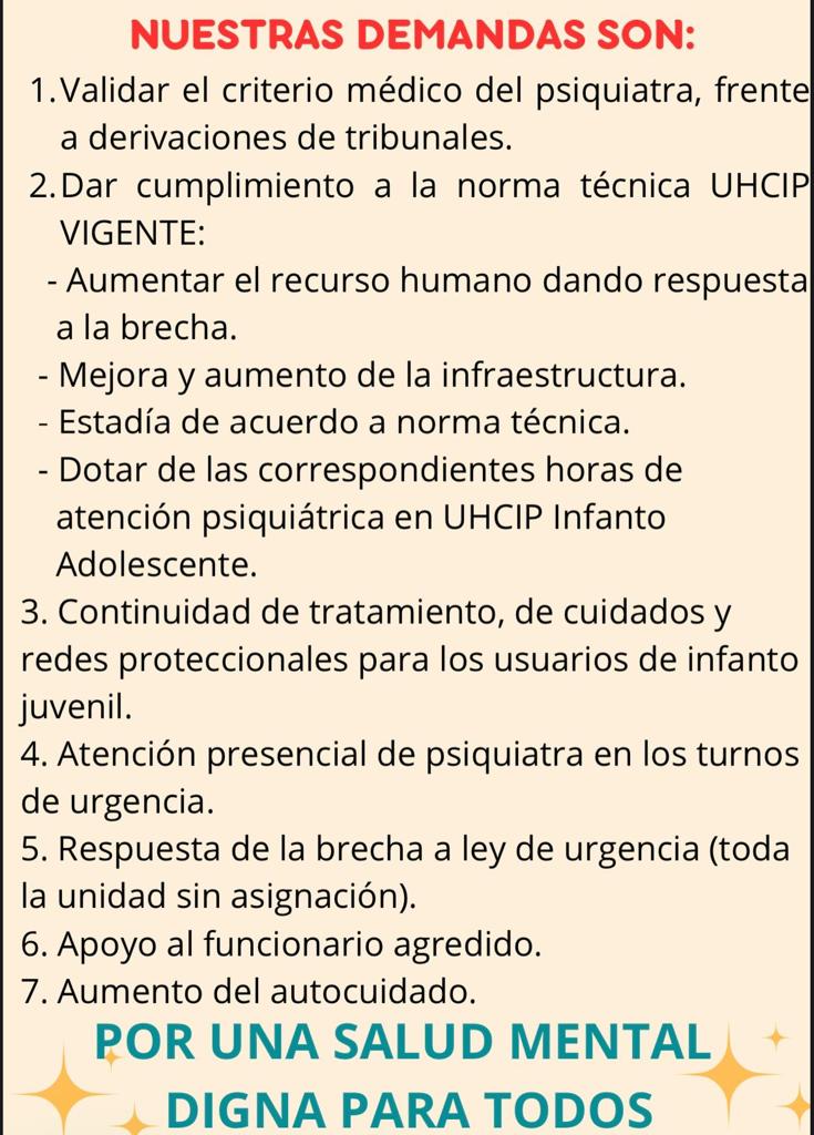 El pasado 19 de octubre, los trabajadores de la Unidad de Psiquiatría del HCM emitieron un comunicado donde dan cuenta públicamente de sus demandas, y cuyo texto es el siguiente: