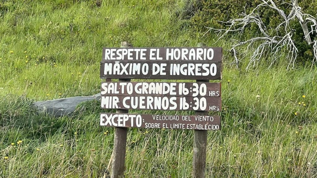 Viernes 17 de noviembre 2023.- Desconcierto causó en la comunidad turística, la instalación de un letrero en el Parque Nacional Torres del Paine, que restringe los horarios de ingreso a dos de los atractivos turísticos más emblemáticos de nuestra región: el Salto Grande y el Mirador de los Cuernos.