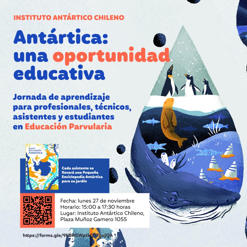 “Antártica: una oportunidad educativa” es una instancia que busca brindar apoyo y fortalecer la formación de conocimientos científicos sobre el Continente Blanco a equipos pedagógicos que trabajan con la primera infancia (educación parvularia y primer ciclo básico), con el fin de ofrecer orientación y experiencias que contribuyan en su labor pedagógica y fomentar la indagación y curiosidad de los niños y niñas por su entorno.