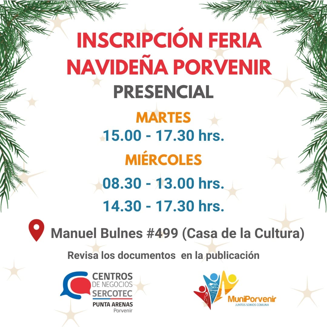 Atención, a partir de las 15.00 hrs de hoy martes 28 de noviembre se abren las inscripciones para participar en la Feria Navideña Porvenir ![]()