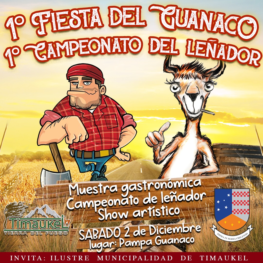 1° FIESTA DEL GUANACO Y 1° CAMPEONATO DEL LEÑADOR, organizada por la Municipalidad de Timaukel el próximo sábado 2 de diciembre en Pampa Guanaco.