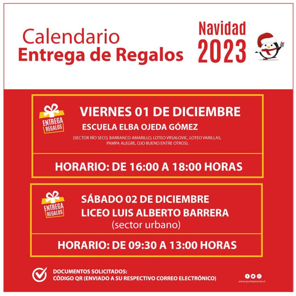 Si te inscribiste en la Navidad Municipal 2023, la Municipalidad de Punta Arenas informa fecha de entrega de regalos. Revisa atentamente la gráfica: