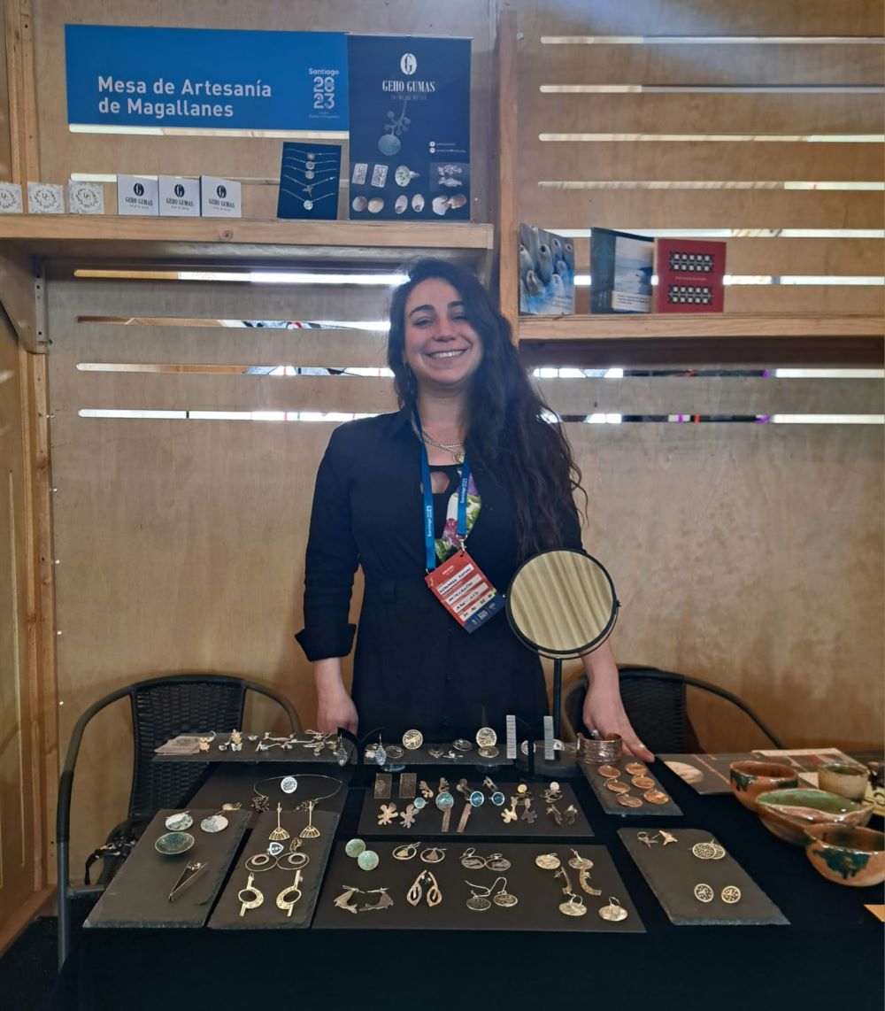 Gehomara Gumas López, desde el 2008 dedicada a la orfebrería y cuyas obras están inspiradas en la flora y fauna de Magallanes, llevó hasta el Pabellón Cultural piezas en metal y cobre, que representan ballenas, colibríes y musgos. Su participación en la muestra de los Panamericanos siente es que es una posibilidad de promover a la región y sus artesanos, además de ponerla en contacto con otras culturas.
