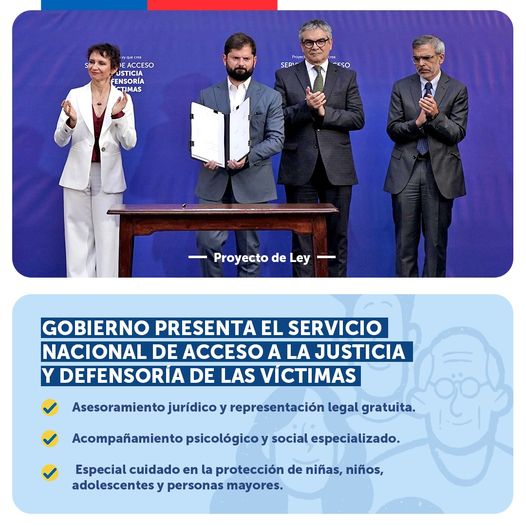 El Presidente Gabriel Boric, junto al ministro Luis Cordero y la ministra Carolina Tohá, presentaron el proyecto de Ley que crea el nuevo Servicio Nacional de Acceso a la Justicia (SNAJ) y la Defensoría de Víctimas.