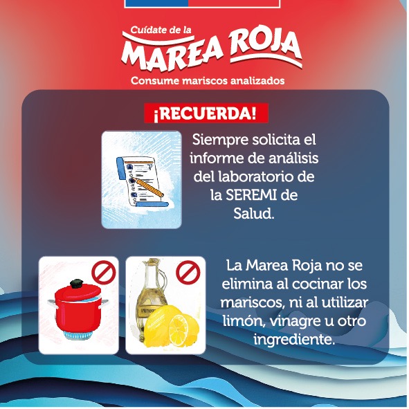 Informa la SEREMI de Salud de la región de Magallanes: Rrecuerde, la #MareaRoja se encuentra presente en #Magallanes, ante lo cual es importante adoptar las siguientes medidas de autocuidado para prevenir intoxicaciones por este fenómeno: