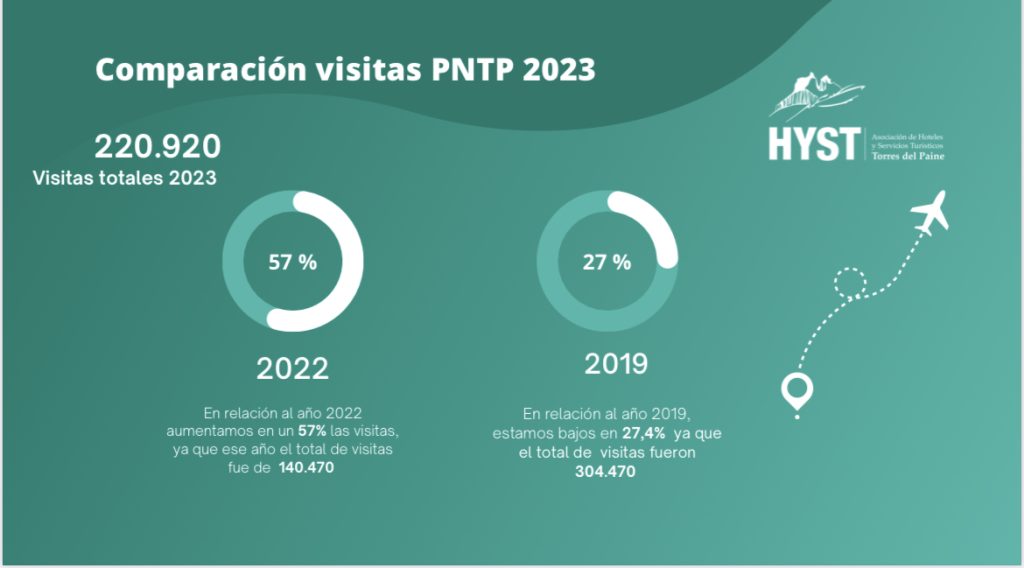 Lunes 8 de enero 2024.- El 2023 fue un año lleno de contrates para el turismo en Magallanes, sobre todo para Torres del Paine, donde el gremio trabajó intensamente para generar alianzas que permitan la recuperación de las cifras de ingreso a la Octava Maravilla.
