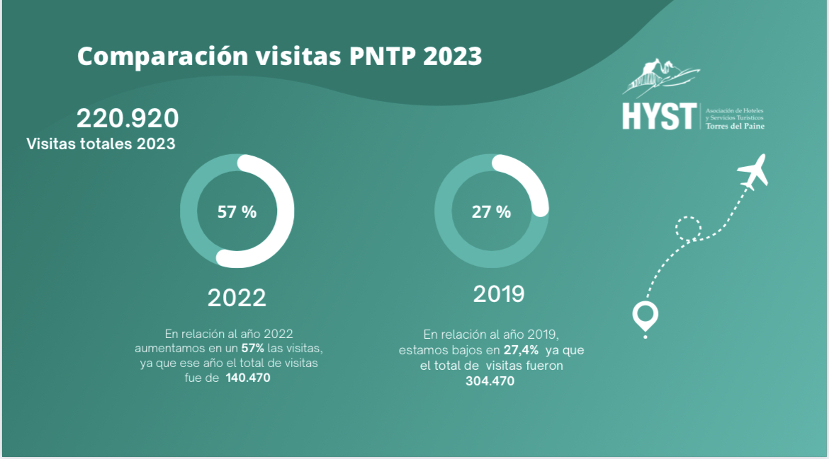 Sara Adema, gerente de la Asociación de Hoteles y Servicios Turísticos de Torres del Paine, HYST, resaltó que “si bien estos números reflejan un crecimiento, la realidad nos muestra que aún estamos un 27,4% por debajo de las cifras registradas en 2019, la mejor temporada turística que hemos tenido en Magallanes”.