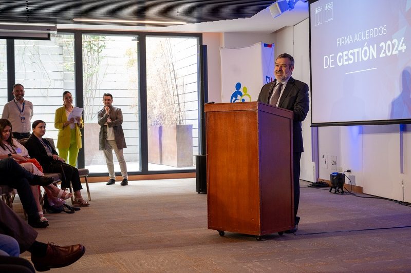 Camilo Cid, Director del Fondo Nacional de Salud (Fonasa) y Osvaldo Salgado, Subsecretario de Redes Asistenciales del Ministerio de Salud, encabezaron la ceremonia de firma de Acuerdos de Gestión año 2024. El encuentro contó con la participación de los directores/as de los 29 servicios de salud, los 2 establecimientos experimentales y 72 hospitales del todo el país, además de las autoridades de la Subsecretaría de Redes Asistenciales y el Fondo Nacional de Salud.