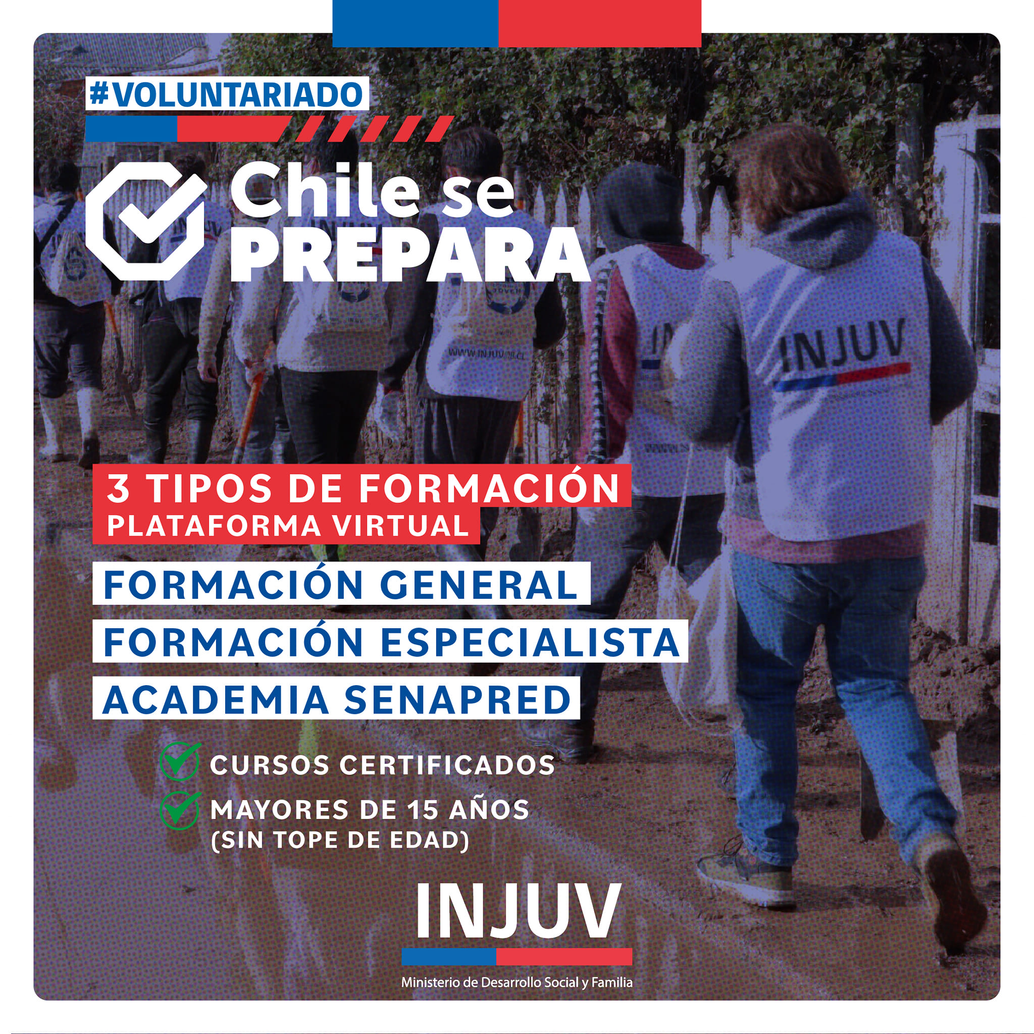 INJUV y SENAPRED invitan a participar en talleres del Voluntariado Chile Se Prepara