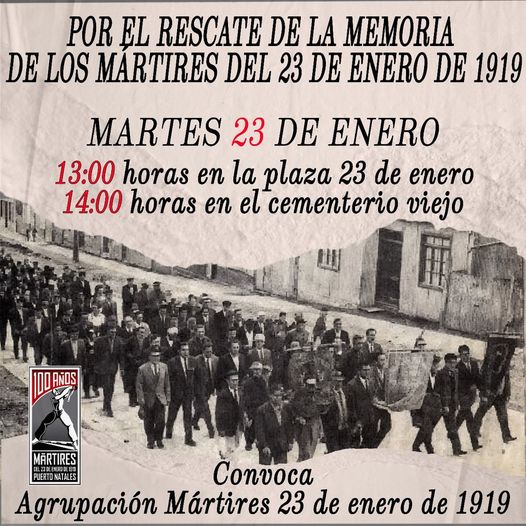 Estos hechos serán recordados este martes 23 de enero en Puerto Natales bajo la convocatoria de la Agrupación Mártires 23 de Enero de 1919.
