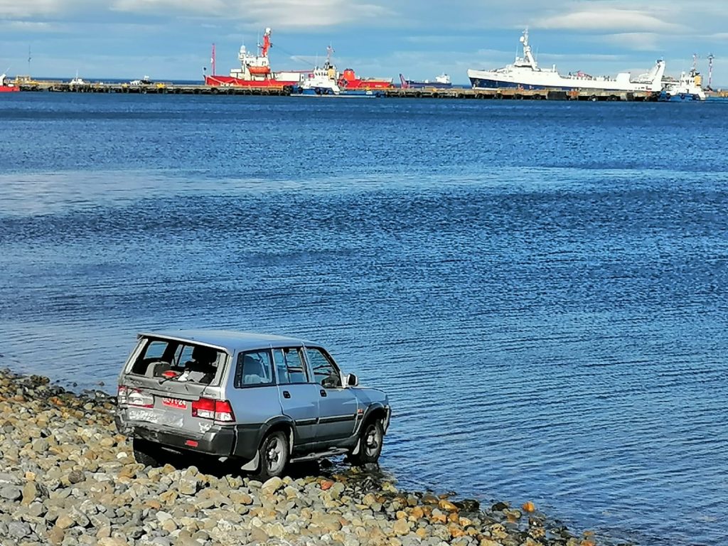 Como consecuencia de la velocidad del utilitario, el vehículo 4X4 fue proyectado hacia la playa quedando en la orilla del estrecho.