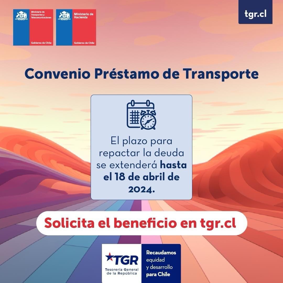Recordamos que el plazo para acogerse a estos beneficios vence el próximo 18 de abril 2024, trámite que puede hacerse mediante la plataforma web https://tgr.cl, o en forma presencial en las oficinas del Tesorería General de la República.