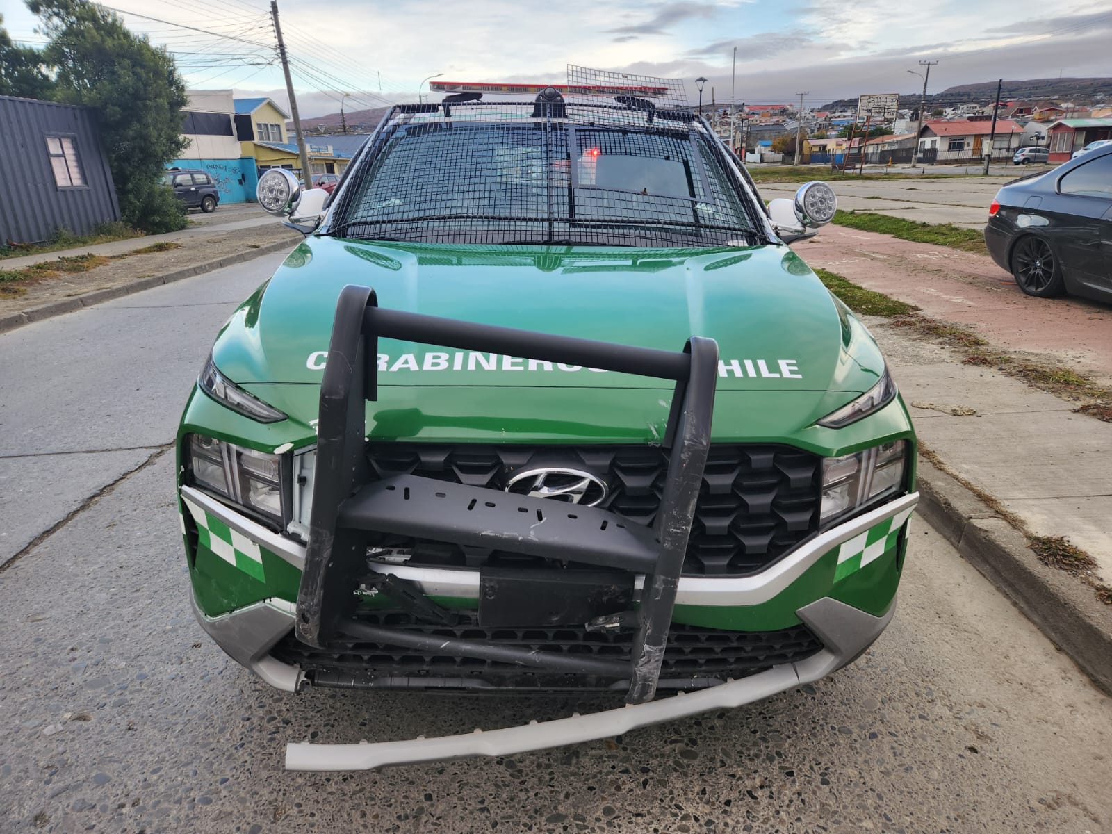 En el operativo policial el conductor del vehículo perseguido colisionó a una de las patrullas y luego en la misma maniobra, pero en reversa, golpea la parte frontal de otro móvil de Carabineros, resultando ambos vehículos policiales dañados.
