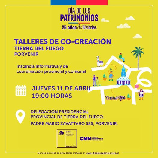SERPAT y la Delegación Provincial de Tierra del Fuego invitan para este jueves a las 19:00 horas para participar del taller de co-creación que tiene como objetivo orientar y apoyar a la ciudadanía en la elaboración de actividades enmarcadas en el Día de los Patrimonios.