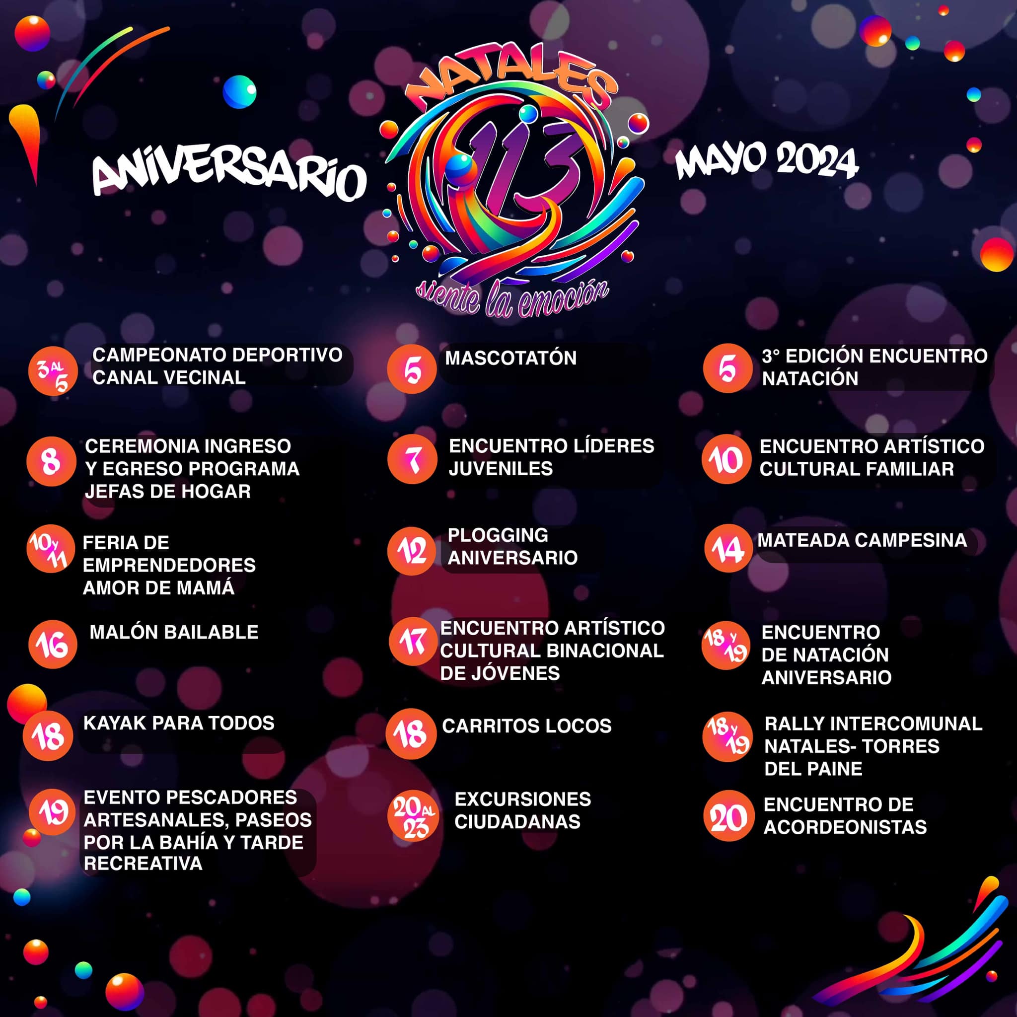 Consultada la primera autoridad comunal, Antonieta Oyarzo Alvarado sobre los preparativos para las actividades aniversario de este año recalcó que, “queremos invitar a todos los vecinos y vecinas sin distinción alguna para que participen y celebren la parrilla de artistas que se han convocada para este año y que también estén presentes en las demás actividades de carácter deportivo y social que son emblemáticas de nuestro gran cumpleaños”.