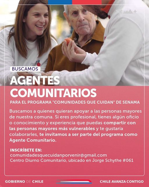 Los Agentes Comunitarios son personas voluntarias que desean ser parte de la red de apoyo de las personas mayores más vulnerables de nuestra comuna.