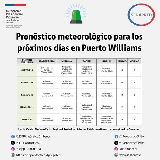 Entregamos detalles con respecto al más reciente pronóstico público para Puerto Williams, de acuerdo al Centro Regional Meteorológico Austral.