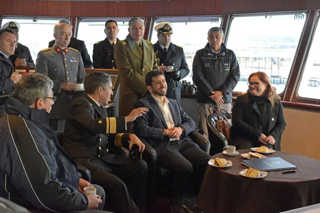 El Delegado Presidencial Regional, José Ruiz Pivcevic, junto a otras autoridades regionales , civiles y militares, acompañaron este jueves 23 de mayo, en el muelle Capitán Juan Guillermos de Punta Arenas al Comandante en Jefe de la III Zona Naval, Contraalmirante Jorge Castillo, en la recalada del remolcador antártico ATF-60 (Auxiliary Tug Fleet en inglés, o remolcador de flota español) #Lientur nombre del reconocido toqui Mapuche, que se suma a la flota de la Armada de Chile en la región de Magallanes y se desempeñará en operaciones logísticas y de navegación polar.
