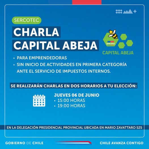 Este jueves 6 de junio se realizará charla para postular al Capital Abeja de Sercotec Magallanes. La invitación es para todas las mujeres emprendedoras mayores de edad y SIN inicio de actividades en primera categoría en el SII.