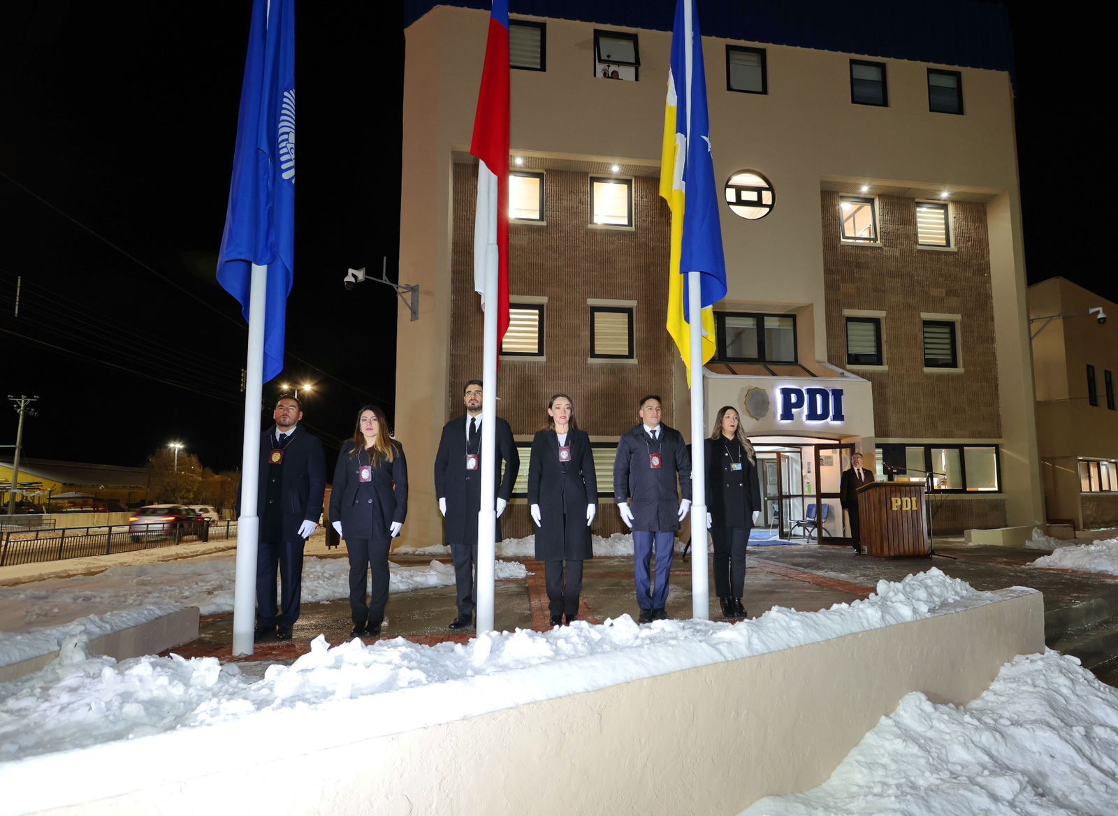 Con una temperatura de 7 grados bajo cero, este 19 de junio, más de 150 integrantes de la Policía de Investigaciones de Chile que se desempeñan en Punta Arenas entonaron, en una formación solemne, el Himno Nacional y el Himno del Detective, mientras se izaba el pabellón nacional, institucional y de la región.