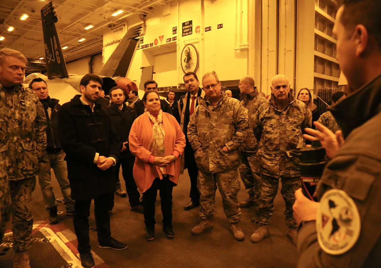 Una comitiva oficial integrada por la Ministra de Defensa Maya Fernández y autoridades regionales visitaron en forma protocolar el buque de guerra estadounidense esta tarde de martes 4 de junio.