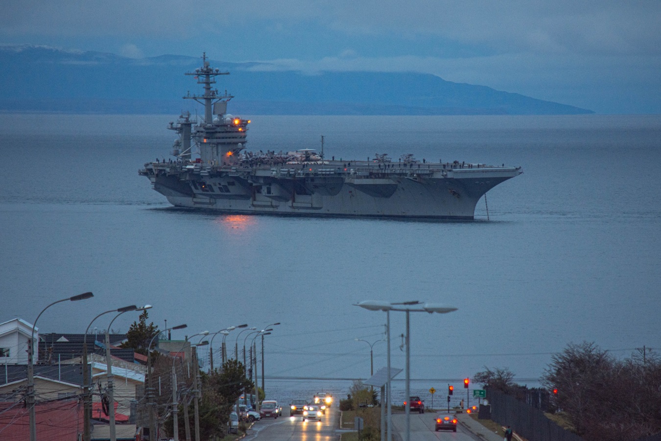 Durante la jornada de hoy, el USS (CVN-73) “George Washington”, portaaviones que lidera el Carrier Strike Group USN (CSG) de la Marina de Guerra de Estados Unidos de América, arribó a la ciudad de Punta Arenas, generando curiosidad entre los habitantes de la capital austral que observaron el ingreso de la megaunidad desde distintos puntos de la ciudad durante la tarde.