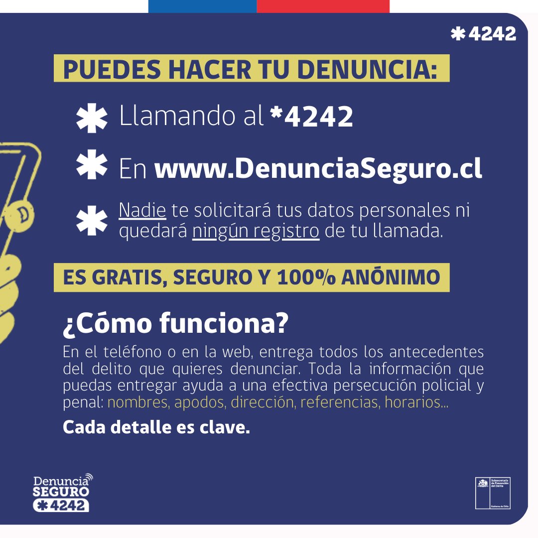 El número*4242 de nuestro programa #DenunciaSeguro te permite denunciar delitos de manera anónima, segura y 100% confidencial.