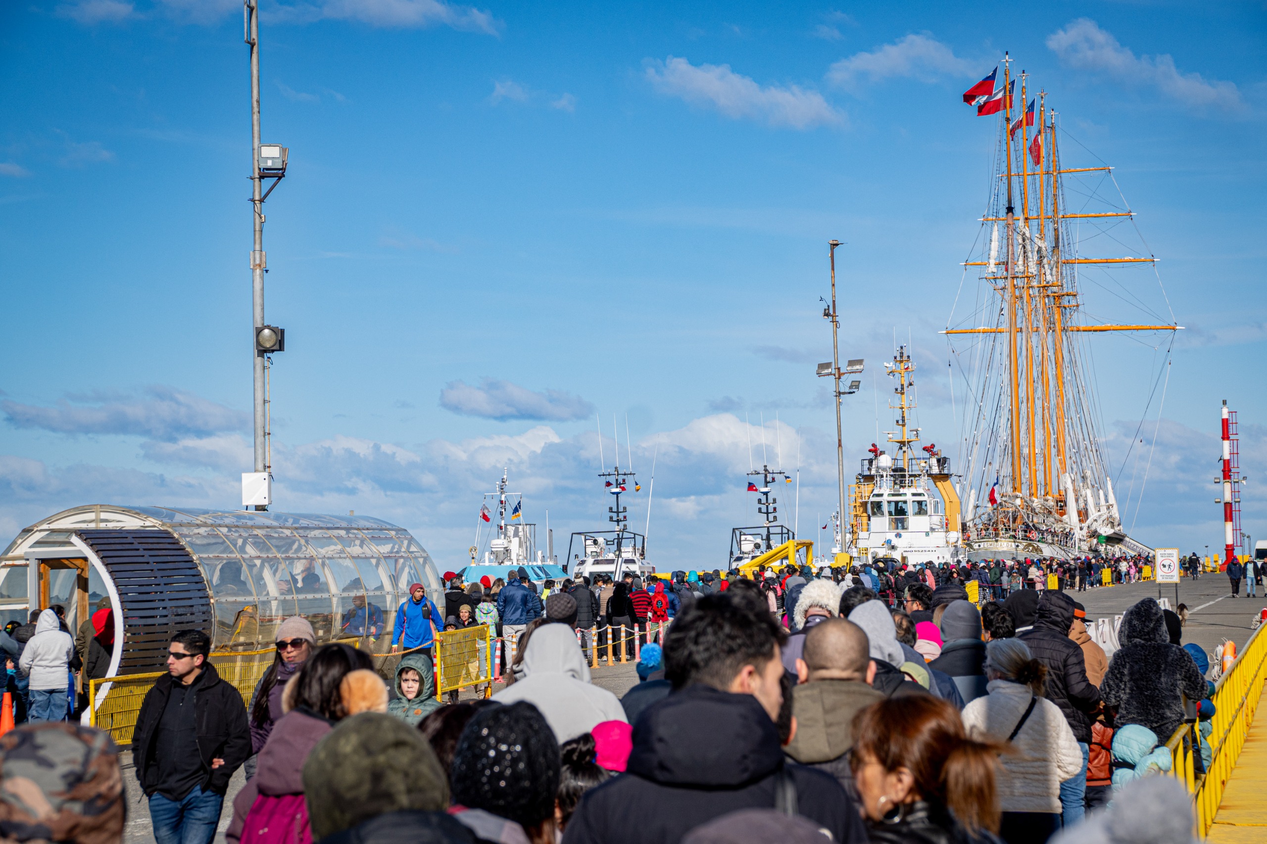 A pesar de las bajas temperaturas y los característicos vientos de la región, miles de magallánicos no quisieron perder la oportunidad de visitar el Buque Escuela «Esmeralda», una auténtica pieza histórica viva de la Armada de Chile. En el tramo final de su 68° crucero de instrucción, la unidad atracó en la capital de la región más austral del país, donde, en solo dos días de visitas abiertas, reunió a cerca de 11 mil personas, estableciendo un récord de asistencias en la zona austral.