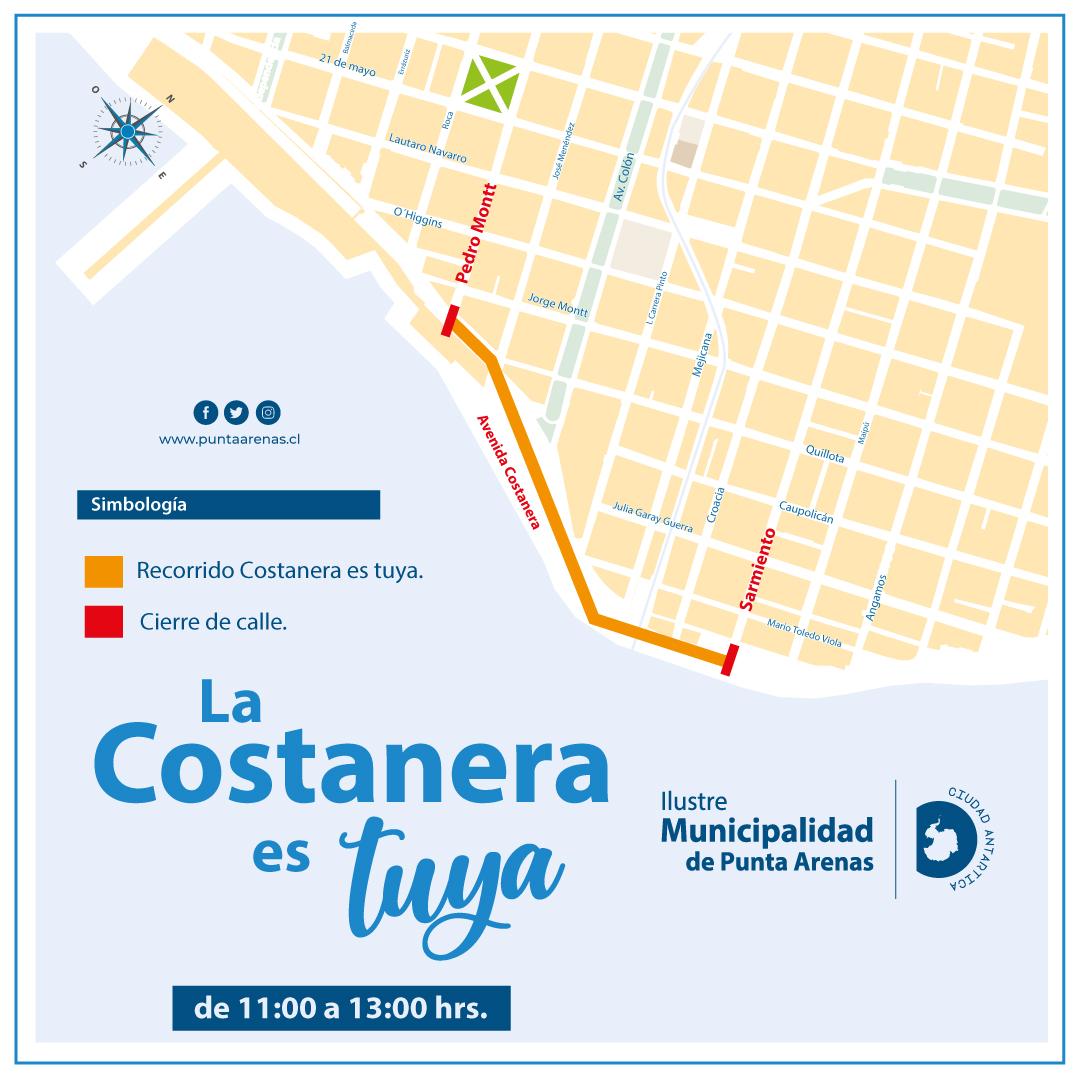 Este domingo, se realizará el corte de calles desde Sarmiento hasta Pedro Montt en la costanera de Punta Arenas debido a la actividad deportiva «La Costanera es Tuya».