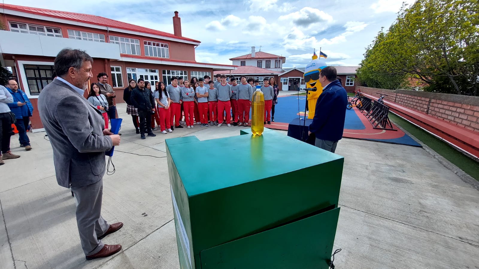 Aguas Magallanes y Colegio Charles Darwin inauguran punto de reciclaje de aceite doméstico en Punta Arenas