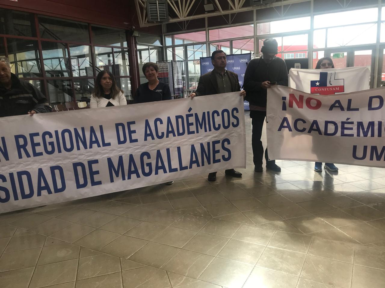 Dirigentes de la Asociación de Funcionarios, de Profesionales, de Académicos y de la Federación de Estudiantes de la UMAG manifestaron conjuntamente su preocupación y rechazo a las medidas de despidos y al proyecto de Reestructuración anunciado por las Rectoría encabezada por José Maripani.