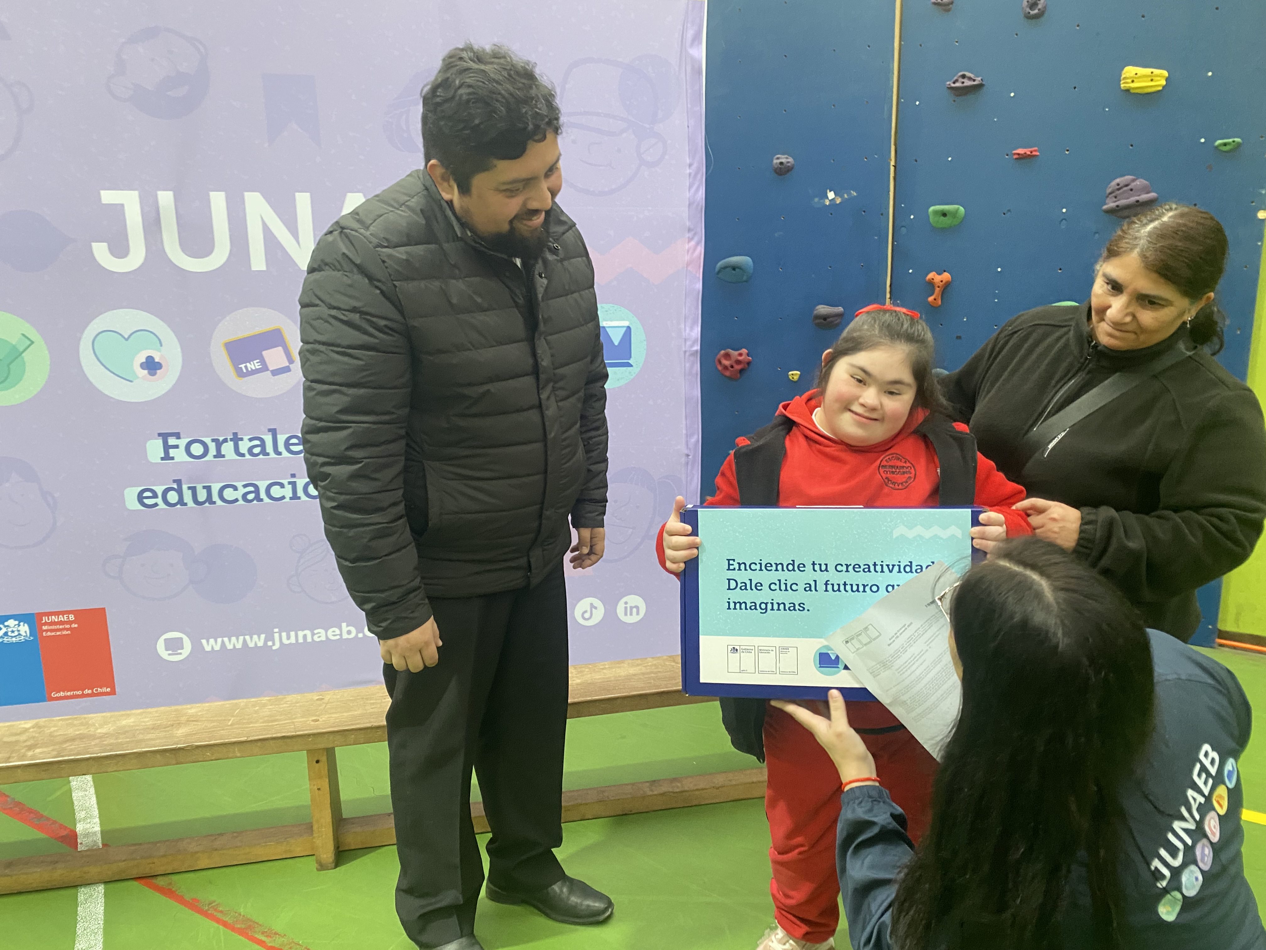 Este mediodía de lunes 9 de junio, en la Escuela Bernardo O’Higgins de Porvenir, el seremi de Educación, Valentín Aguilera Gómez, junto con la directora regional de la Junta Nacional de Auxilio Escolar y Becas (Junaeb), Natacha Carrasco Salinas, y el delegado presidencial provincial, José Campos Prieto, hicieron entrega de las Becas de Acceso a Tecnología, Información y Comunicaciones (TIC) 2025 a 81 estudiantes de la Provincia de Tierra de Fuego.