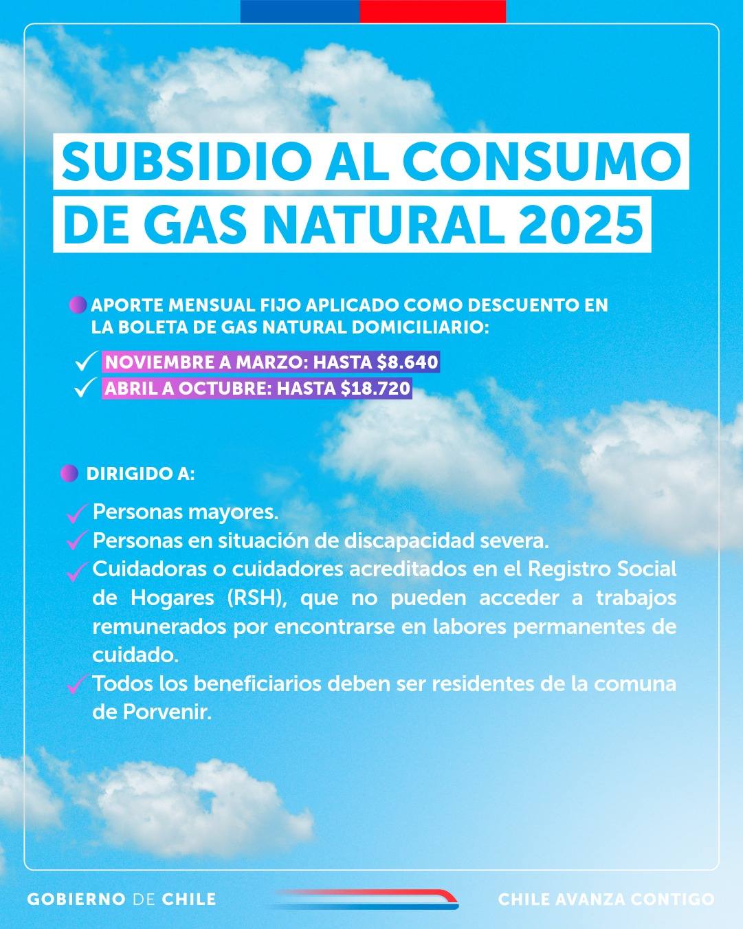 Este beneficio busca aliviar los gastos de gas domiciliario en los hogares más vulnerables de nuestra comuna, donde el gas es esencial para enfrentar el clima fueguino