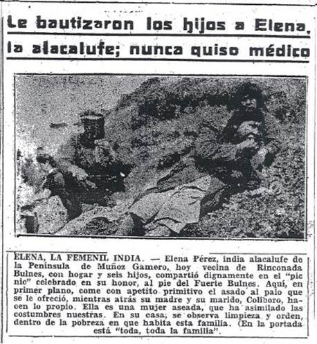 Elena provenía de la península Muñoz Gamero, donde algún misionero la apellidó Pérez. Braulio, un huilliche de Quellón, fue soldado, leñador, carpintero, pescador y lobero. En la prensa, se refirió a su compañera como ‘’una mujer del agua (..) Nació así, trabajando. Ahora, con los hijos, no puede casi, pero siempre me ayuda a pescar, a cazar y a vivir en las rucas’’.